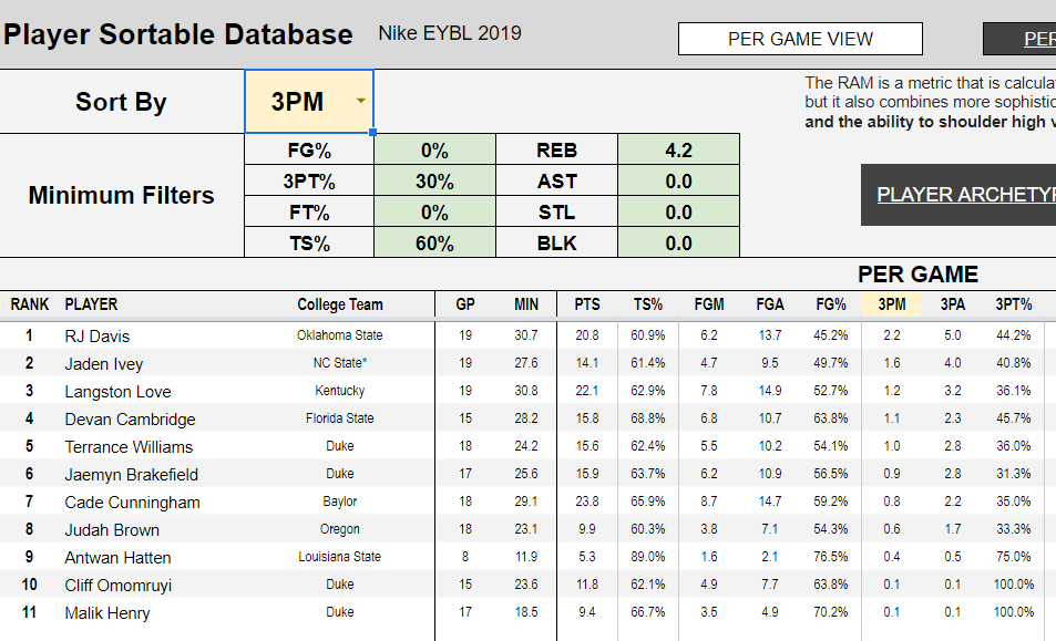 This dataset includes all box score stats, along with the ability to use the following tools: